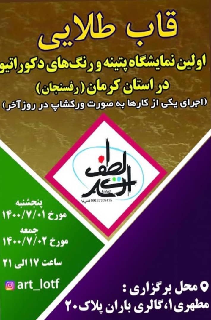 نمایشگاه دو روزه ی هنر پتینه و رنگ های دکوراتیو و انجام ورک شاپ رایگان در روز دوم توسط آقای لطفی در گالری باران.
